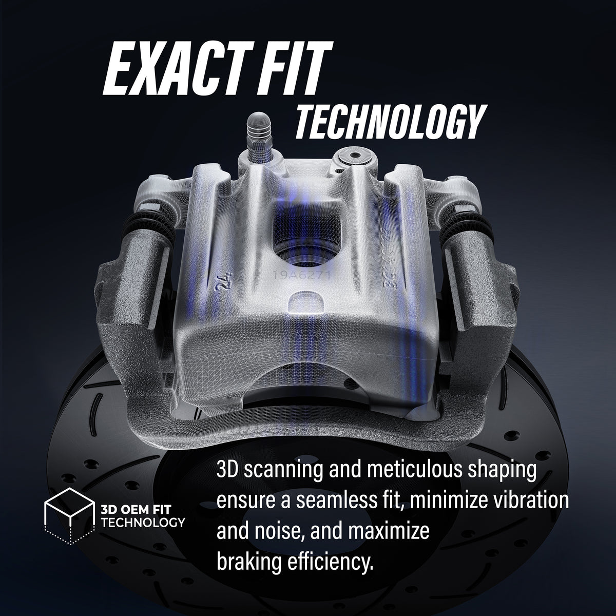 Front Disc Brake Coated Caliper Drilled Slotted Rotors And Ceramic Pads Kit For 2004-2005 Honda Civic Si with 1.7L With 5 Lug Wheels KCD-100133N