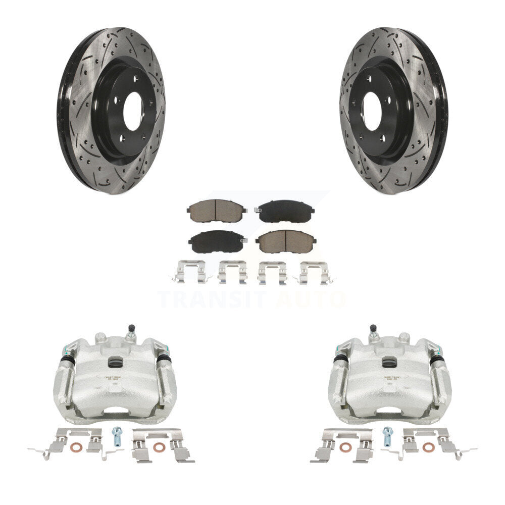 Front Disc Brake Coated Caliper Drilled Slotted Rotors And Ceramic Pads Kit For Nissan Sentra Juke KCD-100134C