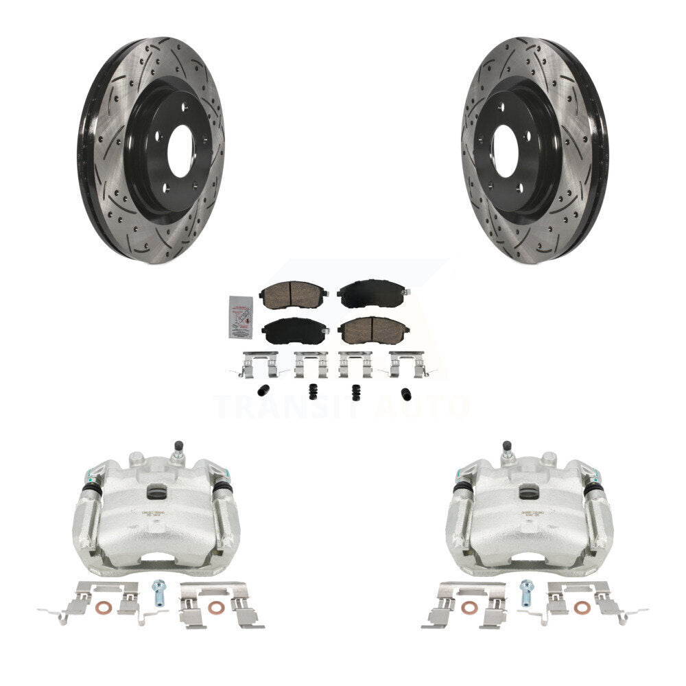 Front Disc Brake Coated Caliper Drilled Slotted Rotors And Ceramic Pads Kit For 2017-2019 Nissan Sentra Turbocharged KCD-100206N