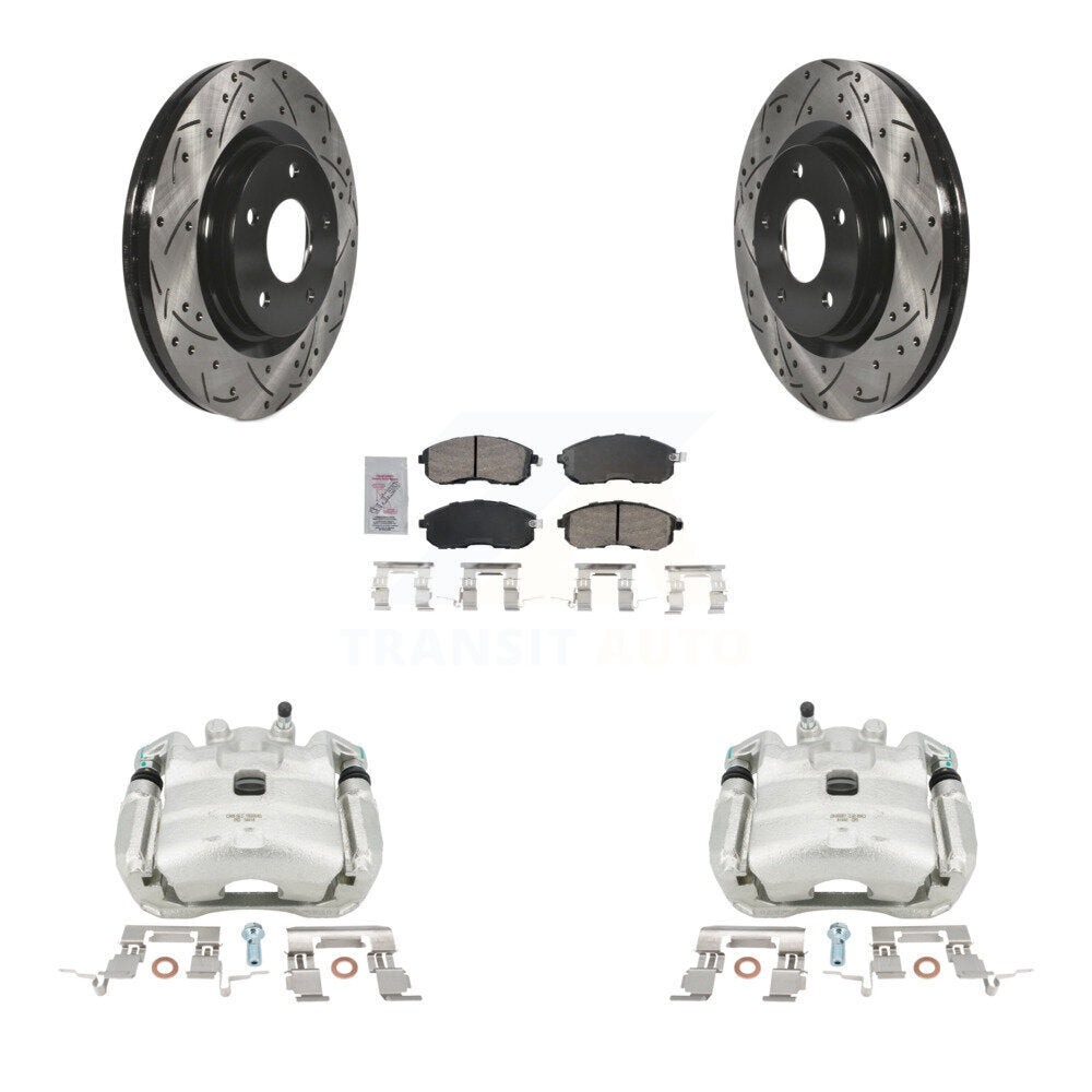 Front Disc Brake Coated Caliper Drilled Slotted Rotors And Ceramic Pads Kit For 2017-2019 Nissan Sentra Turbocharged KCD-100207N