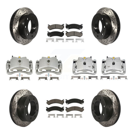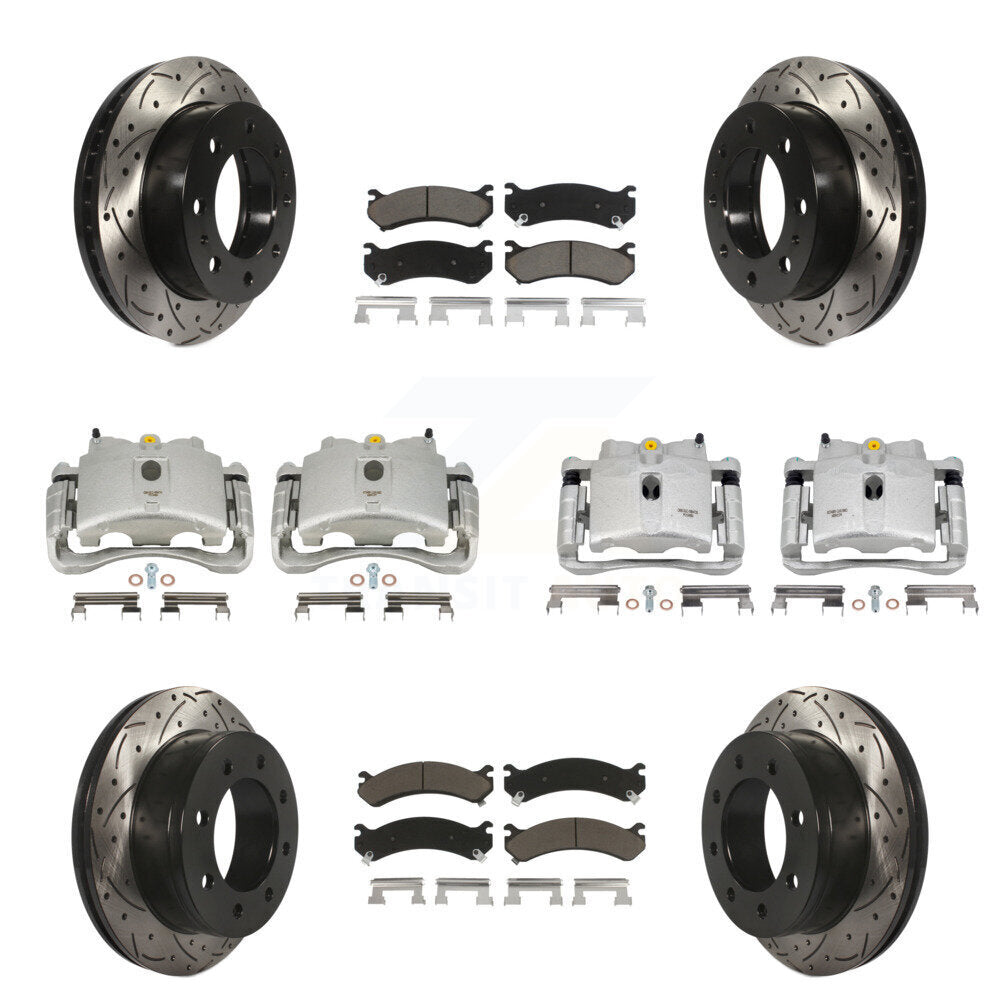 Front Rear Disc Brake Coated Caliper Drilled Slotted Rotors And Ceramic Pads Kit (10Pc) For Chevrolet Silverado 2500 HD GMC Sierra 3500 Classic Suburban Yukon XL Avalanche KCD-100308C