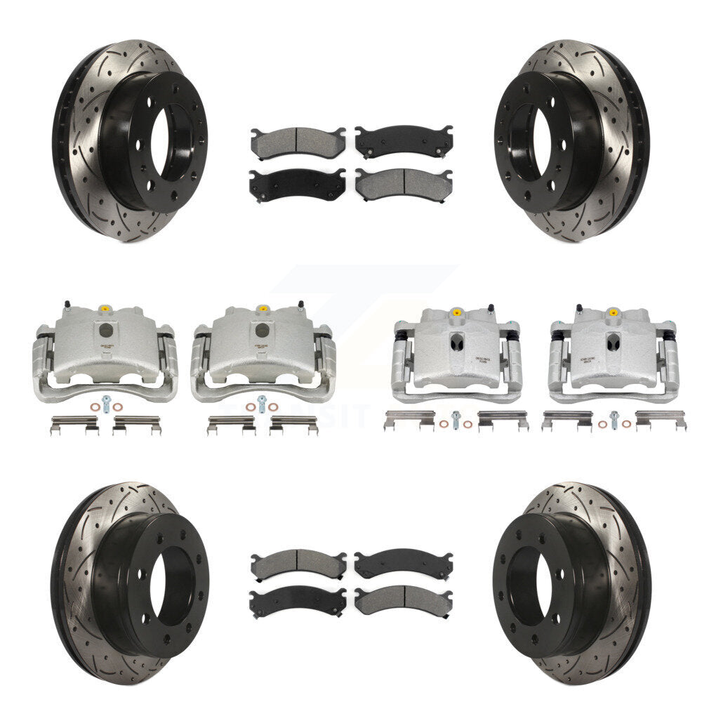 Front Rear Disc Brake Coated Caliper Drilled Slotted Rotor And Semi-Metallic Pad Kit (10Pc) For Chevrolet Silverado 2500 HD GMC Sierra 3500 Classic Suburban Yukon XL Avalanche KCD-100334S