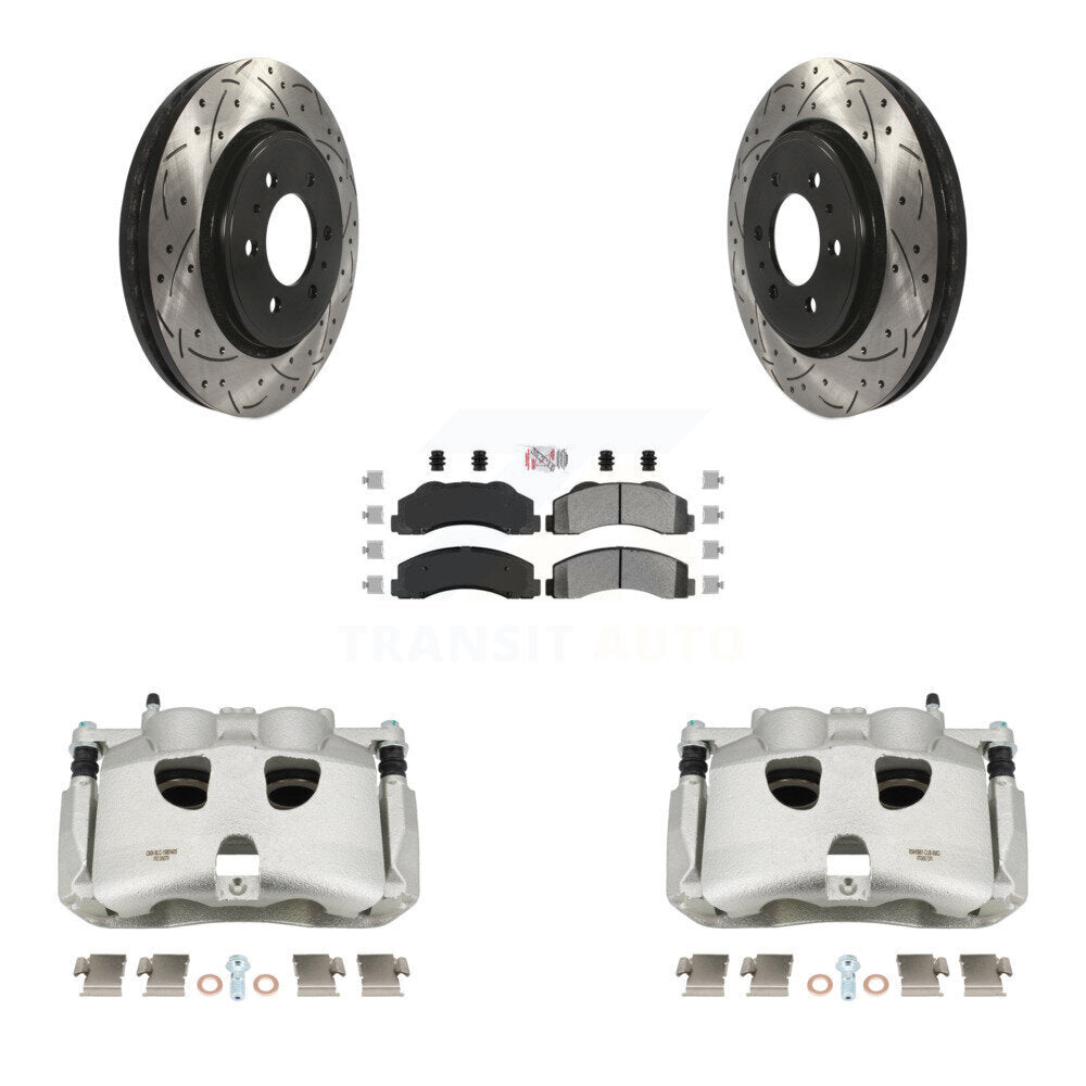 Front Disc Brake Coated Caliper Drilled Slotted Rotors And Semi-Metallic Pads Kit For Ford F-150 KCD-100390N