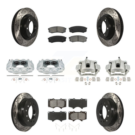 Front Rear Disc Brake Coated Caliper Drilled Slotted Rotors And Semi-Metallic Pads Kit (10Pc) For Toyota 4Runner Lexus GX460 KCD-100400S