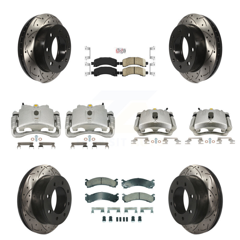 Front Rear Disc Brake Coated Caliper Drilled Slotted Rotors And Ceramic Pads Kit (10Pc) For Chevrolet Express 2500 GMC Savana KCD-100428N