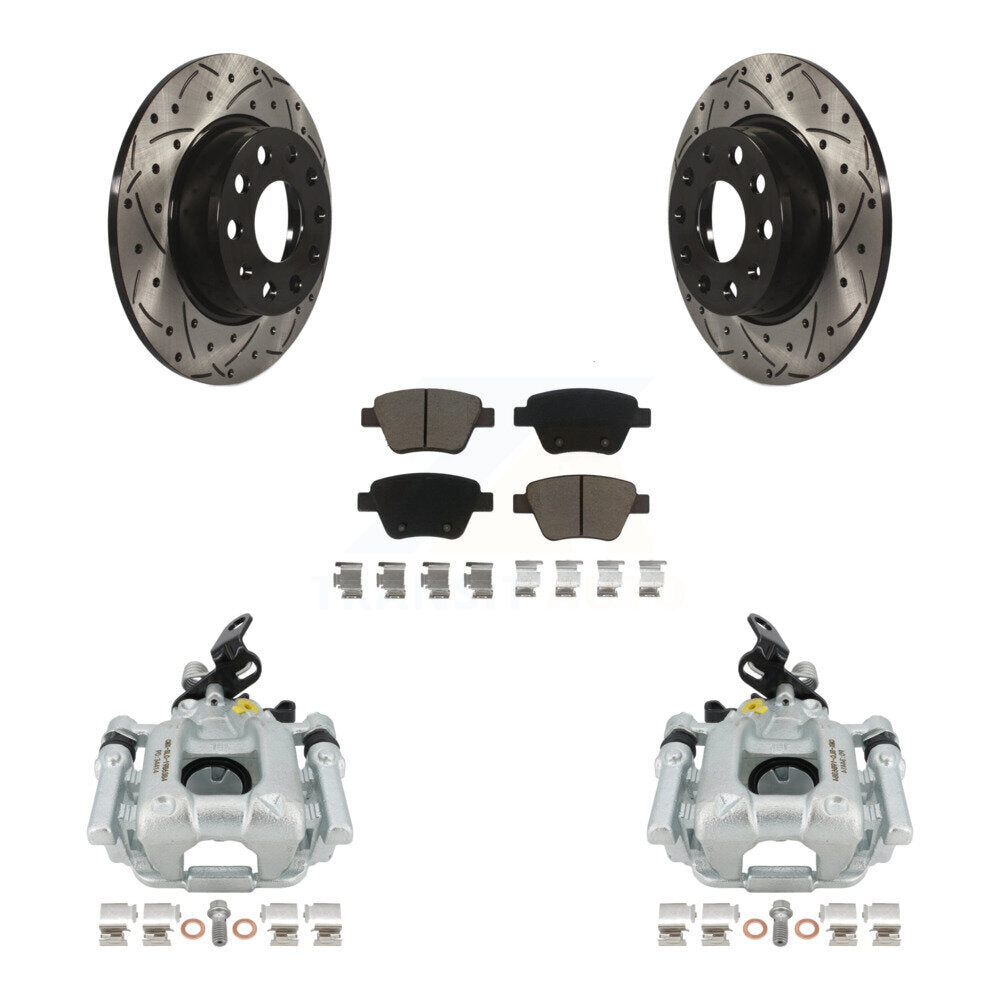 Rear Disc Brake Coated Caliper Drilled Slotted Rotors And Ceramic Pads Kit For Volkswagen Jetta Passat Golf GTI Beetle Eos Audi A3 Quattro KCD-100433C