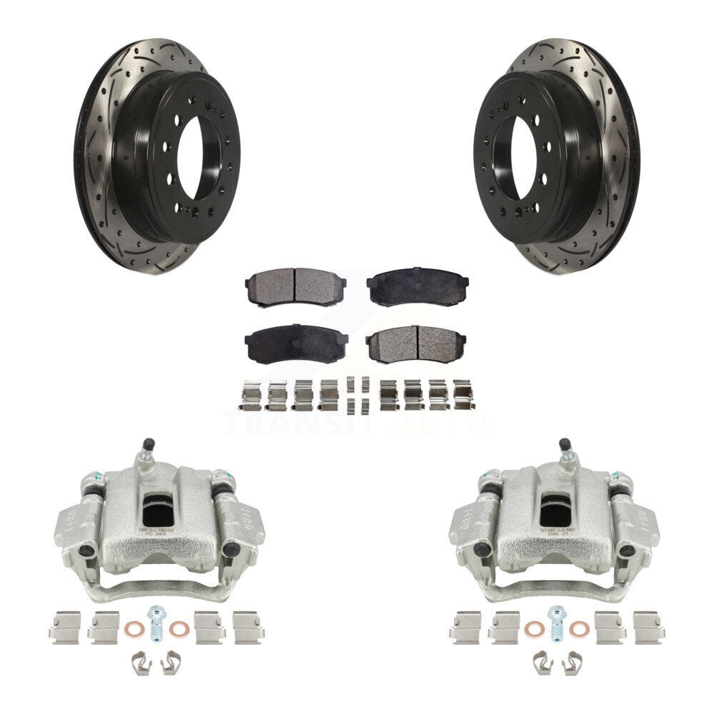 Rear Disc Brake Coated Caliper Drilled Slotted Rotors And Semi-Metallic Pads Kit For Toyota 4Runner Lexus GX460 KCD-100484P
