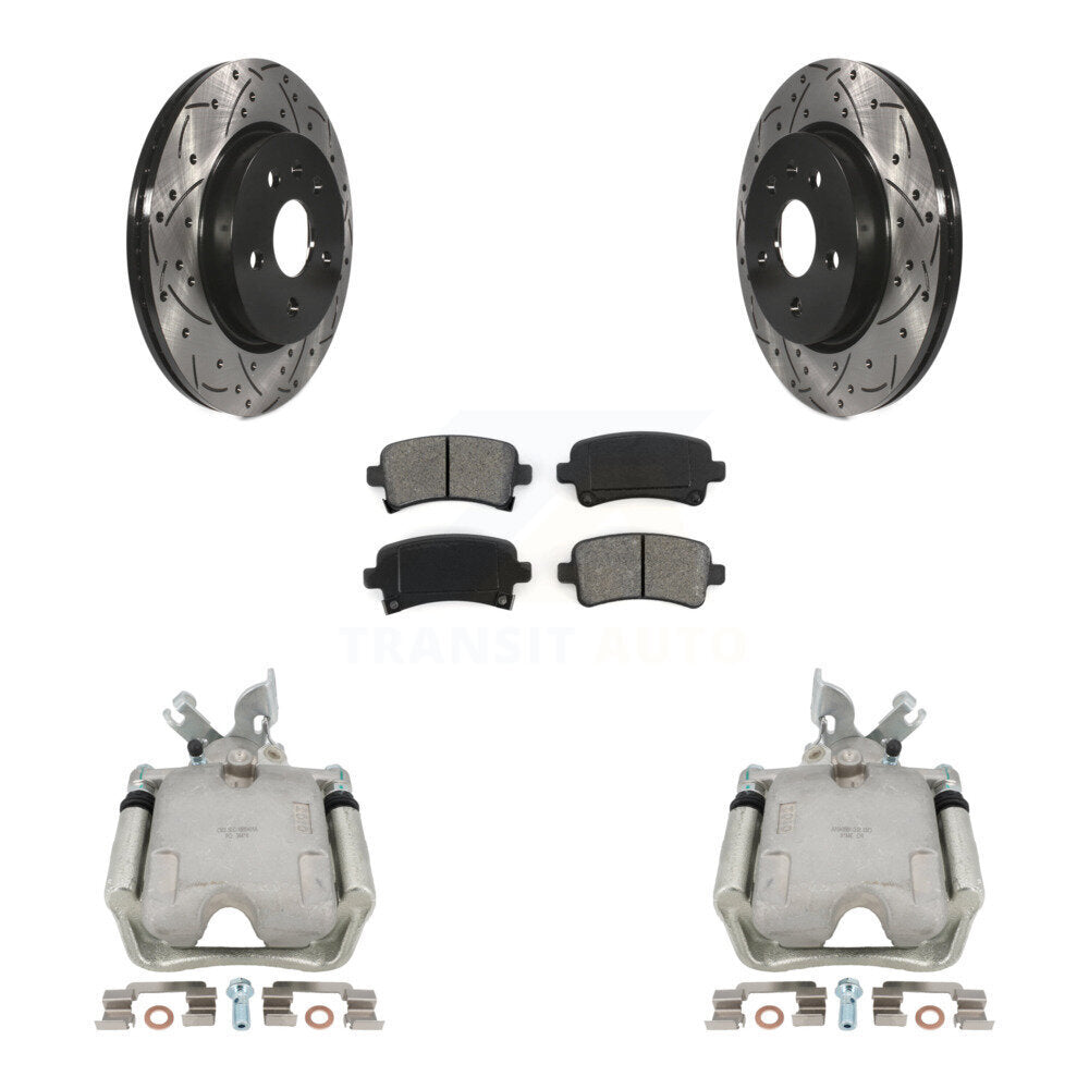 Rear Disc Brake Coated Caliper Drilled Slotted Rotors And Semi-Metallic Pads Kit For Chevrolet Impala Buick LaCrosse Malibu Regal Cadillac XTS KCD-100522S