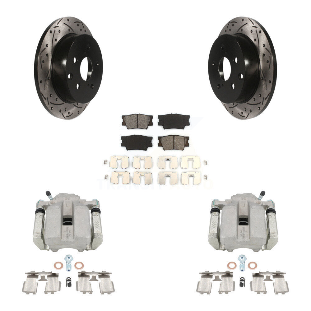 Rear Disc Brake Coated Caliper Drilled Slotted Rotors And Semi-Metallic Pads Kit For Toyota RAV4 KCD-100577S