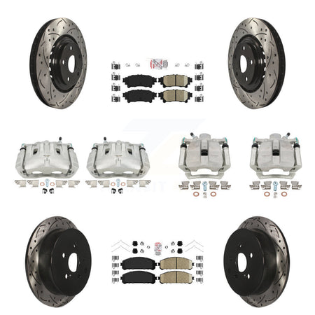 Front Rear Disc Brake Coated Caliper Drilled Slotted Rotors And Ceramic Pads Kit (10Pc) For Toyota Highlander Sienna Lexus RX350 KCD-100597N