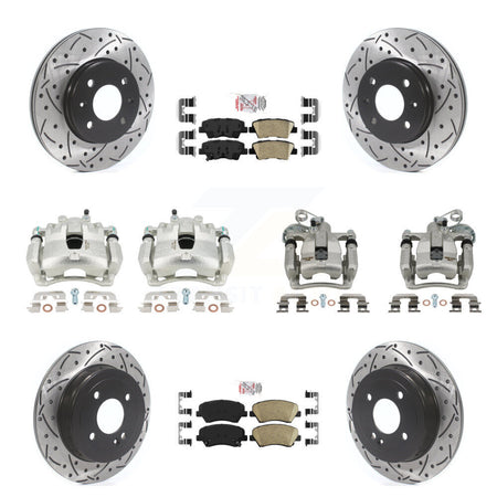 Front Rear Disc Brake Coated Caliper Drilled Slotted Rotors And Ceramic Pads Kit (10Pc) For 2012-2016 Hyundai Accent KCD-100604N