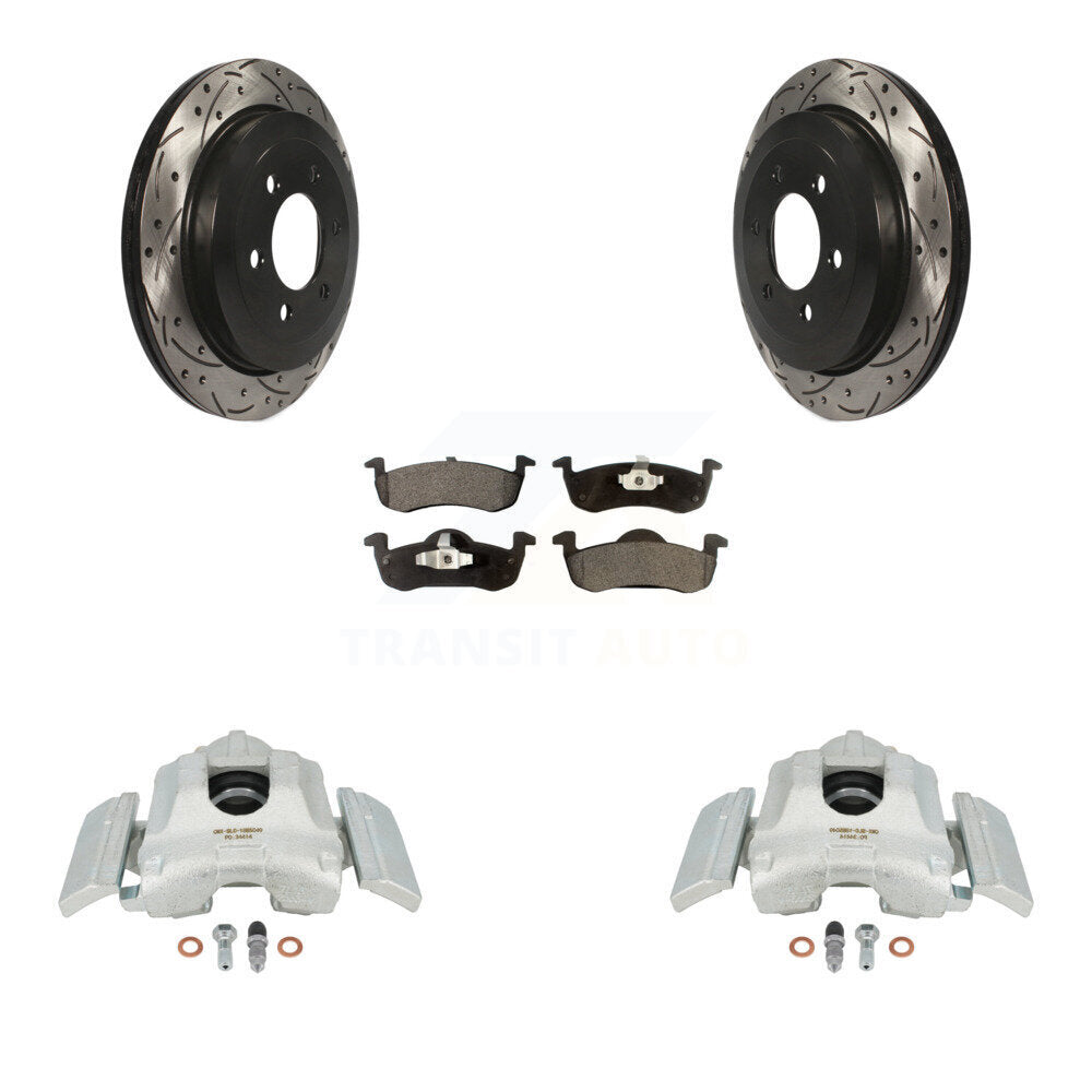 Rear Disc Brake Coated Caliper Drilled Slotted Rotors And Semi-Metallic Pads Kit For 2007-2017 Ford Expedition Lincoln Navigator KCD-100607P