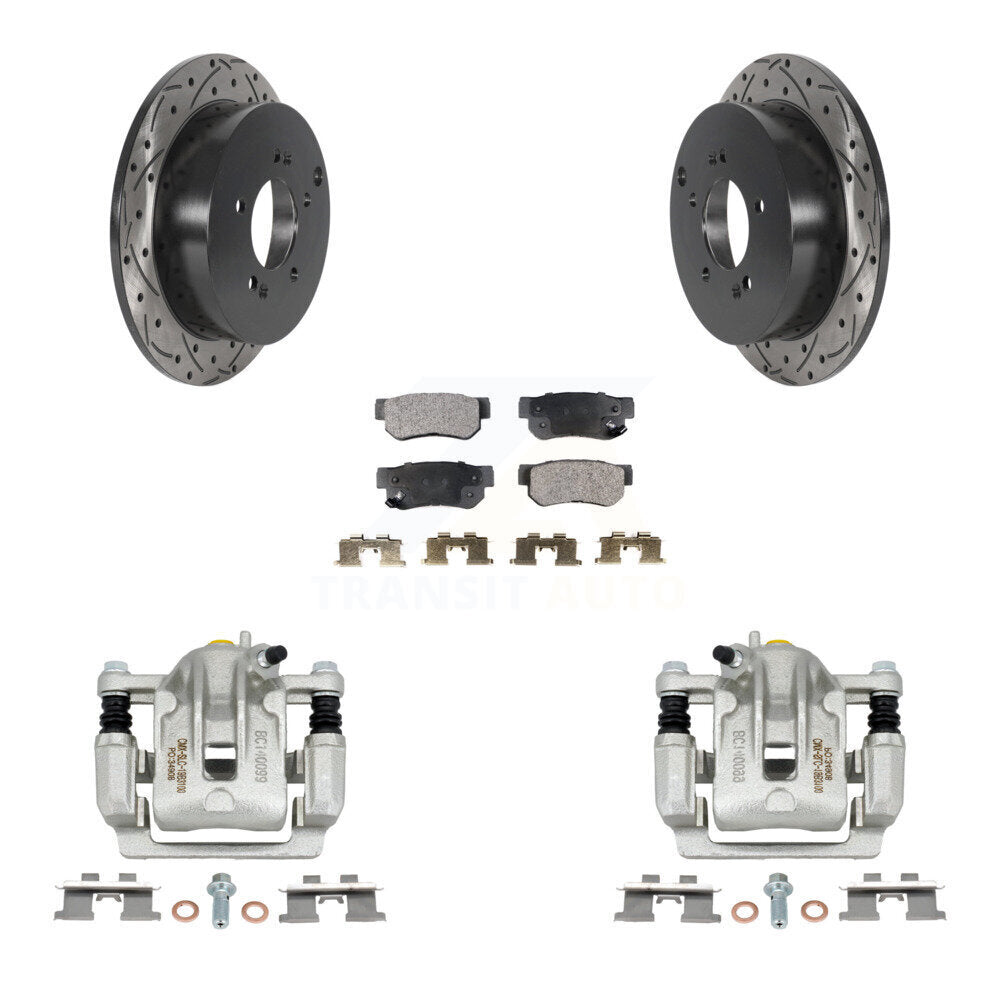 Rear Disc Brake Coated Caliper Drilled Slotted Rotors And Semi-Metallic Pads Kit For Kia Sportage Hyundai Tucson KCD-100614P