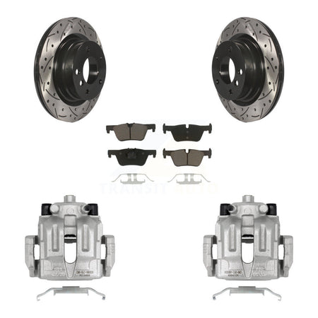 Rear Disc Brake Coated Caliper Drilled Slotted Rotors And Ceramic Pads Kit For 2012 BMW 328i 2.0L Without Blue Painted Calipers KCD-100619C