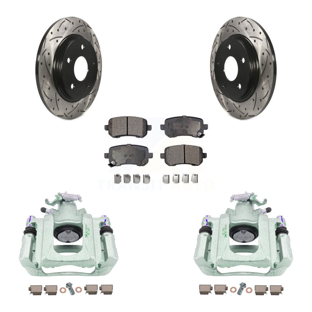 Rear Disc Brake Coated Caliper Drilled Slotted Rotors And Semi-Metallic Pads Kit For Chrysler Town & Country Dodge Grand Caravan Volkswagen Routan Ram C/V KCD-100633P