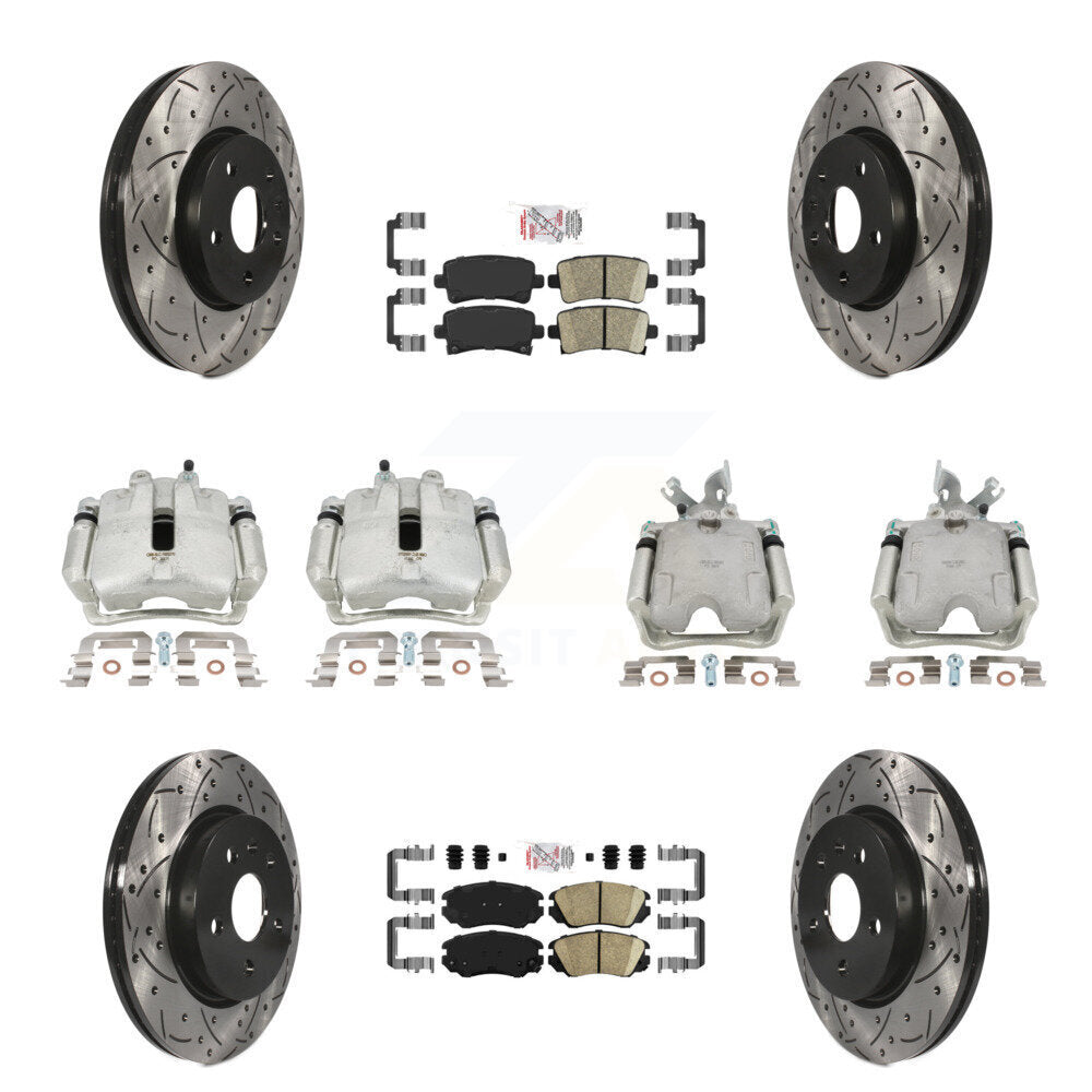 Front Rear Disc Brake Coated Caliper Drilled Slotted Rotors And Ceramic Pads Kit (10Pc) For Buick LaCrosse Allure KCD-100635N