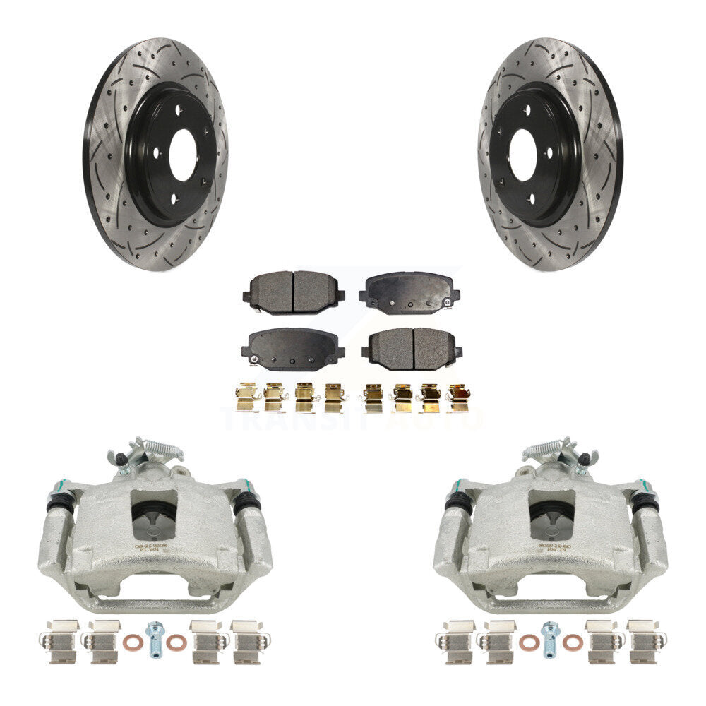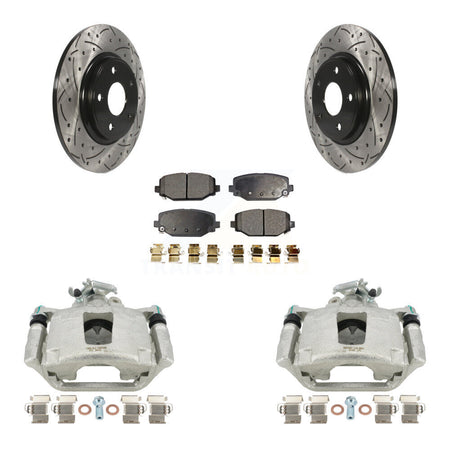 Rear Disc Brake Coated Caliper Drilled Slotted Rotors And Semi-Metallic Pads Kit For Dodge Grand Caravan KCD-100637P