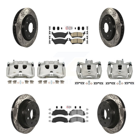 Front Rear Disc Brake Coated Caliper Drilled Slotted Rotors And PADSMATERIAL Pads Kit (10Pc) For 2012-2014 Ford F-150 With 7 Lug Wheels KCD-100684N