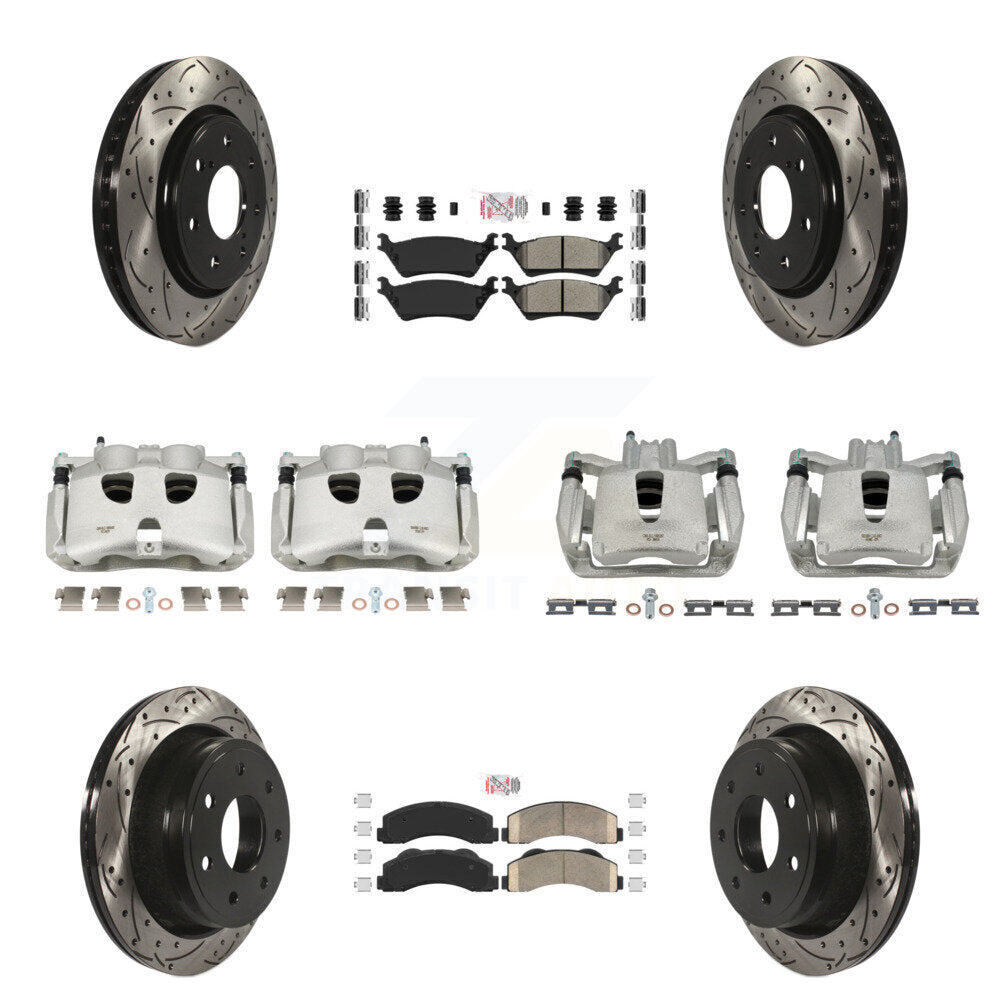 Front Rear Disc Brake Coated Caliper Drilled Slotted Rotors And PADSMATERIAL Pads Kit (10Pc) For 2012-2014 Ford F-150 With 7 Lug Wheels KCD-100688N