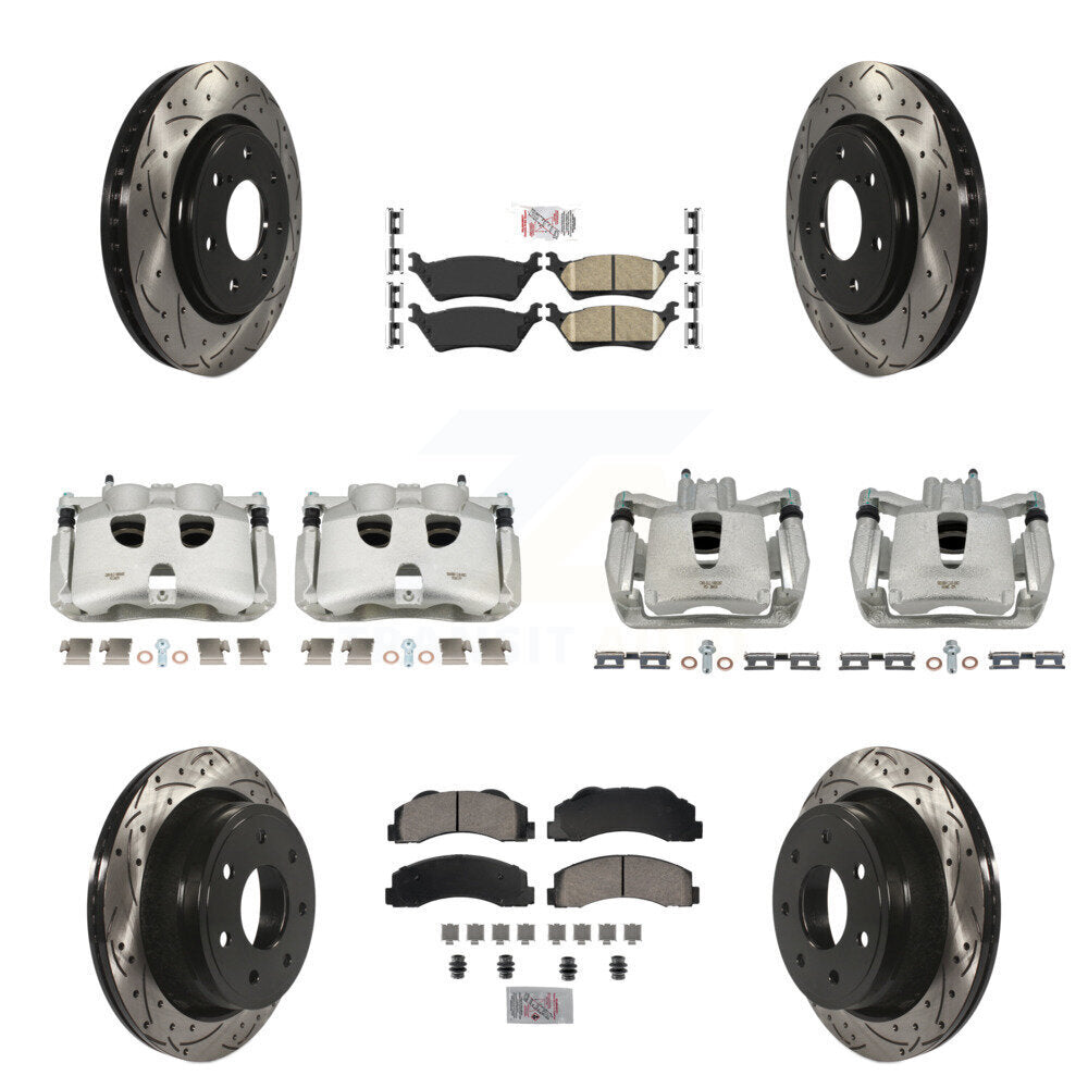 Front Rear Disc Brake Coated Caliper Drilled Slotted Rotors And Ceramic Pads Kit (10Pc) For 2012-2014 Ford F-150 With 7 Lug Wheels KCD-100689N