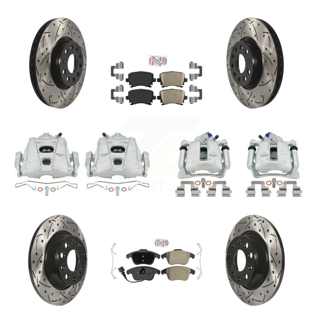 Front Rear Disc Brake Coated Caliper Drilled Slotted Rotors And PADSMATERIAL Pads Kit (10Pc) For 2009-2011 Volkswagen Tiguan KCD-100752N