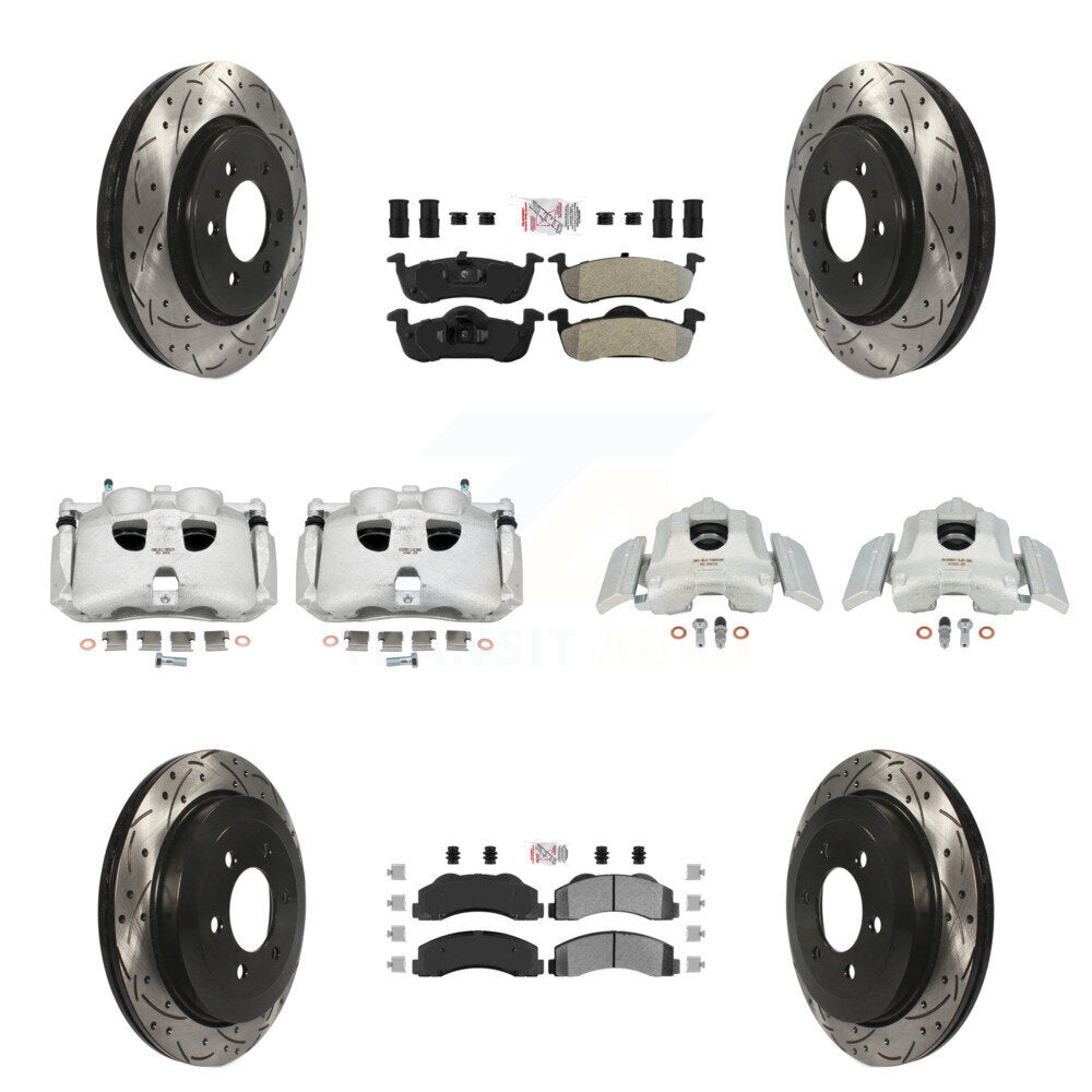 Front Rear Disc Brake Coated Caliper Drilled Slotted Rotors And Semi-Metallic Pads Kit (10Pc) For 2010-2017 Ford Expedition Lincoln Navigator KCD-100758N