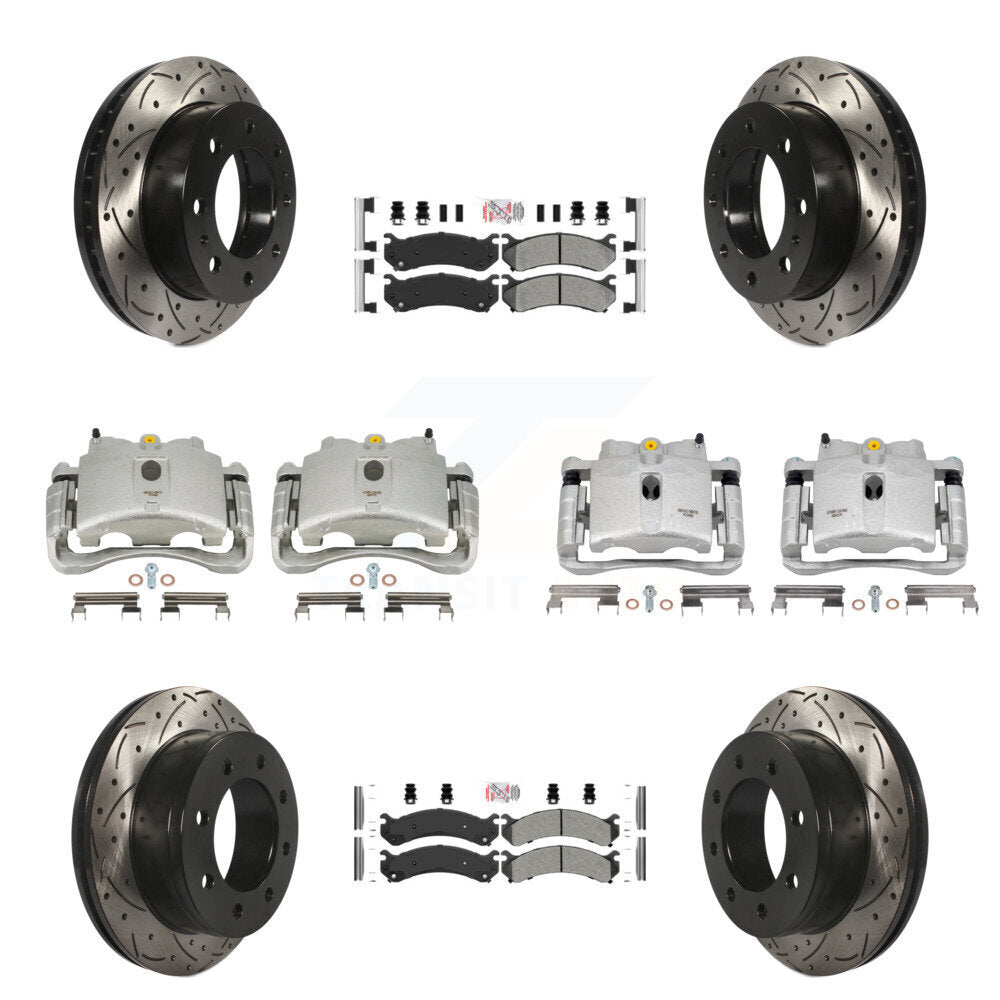 Front Rear Disc Brake Coated Caliper Drilled Slotted Rotor And Semi-Metallic Pad Kit (10Pc) For Chevrolet Silverado 2500 HD GMC Sierra 3500 Classic Suburban Yukon XL Avalanche KCD-100784N