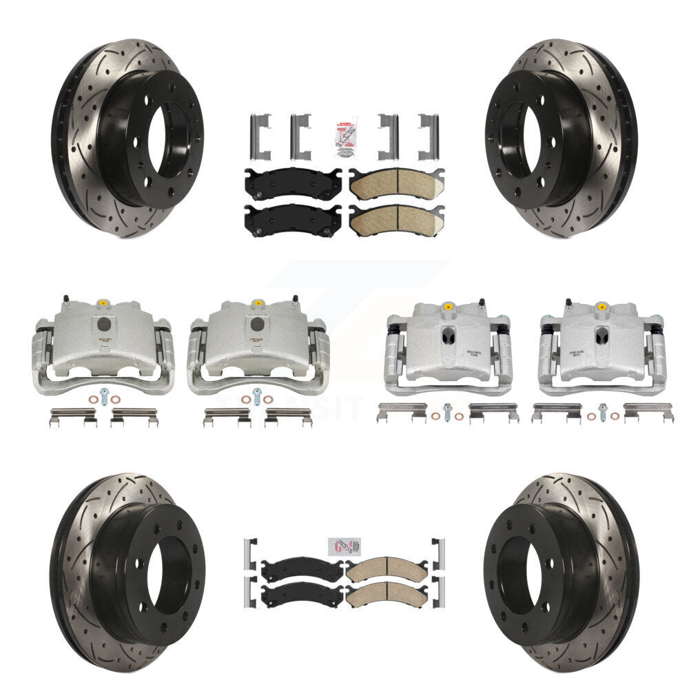 Front Rear Disc Brake Coated Caliper Drilled Slotted Rotors And Ceramic Pads Kit (10Pc) For Chevrolet Silverado 2500 HD GMC Sierra 3500 Classic Suburban Yukon XL Avalanche KCD-100785N