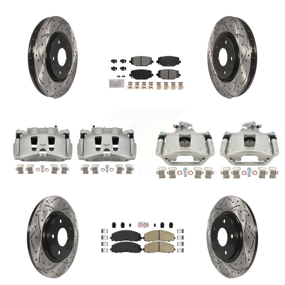 Front Rear Disc Brake Coated Caliper Drilled Slotted Rotors And Ceramic Pads Kit (10Pc) For Dodge Grand Caravan KCD-101035N