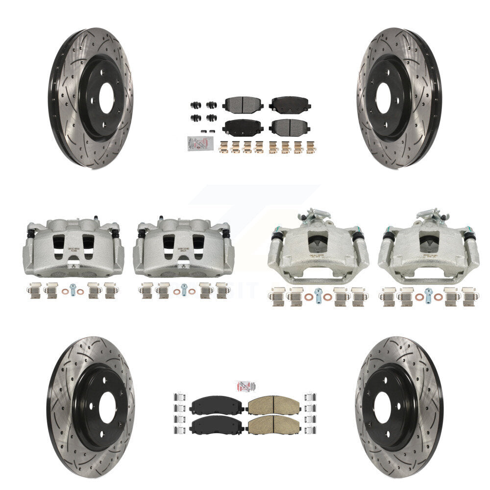 Front Rear Disc Brake Coated Caliper Drilled Slotted Rotors And Ceramic Pads Kit (10Pc) For Dodge Grand Caravan KCD-101038N