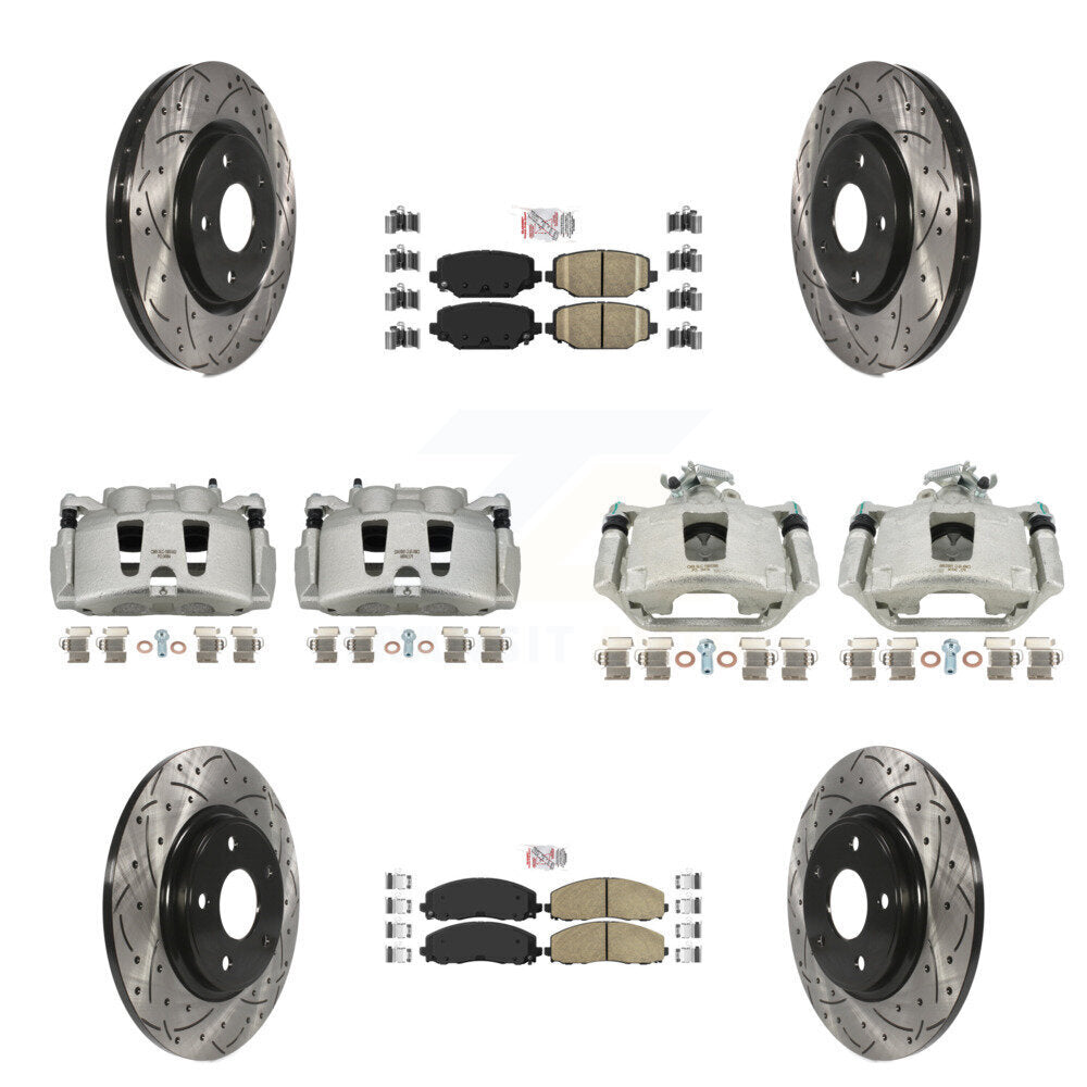 Front Rear Disc Brake Coated Caliper Drilled Slotted Rotors And Ceramic Pads Kit (10Pc) For Dodge Grand Caravan KCD-101040N