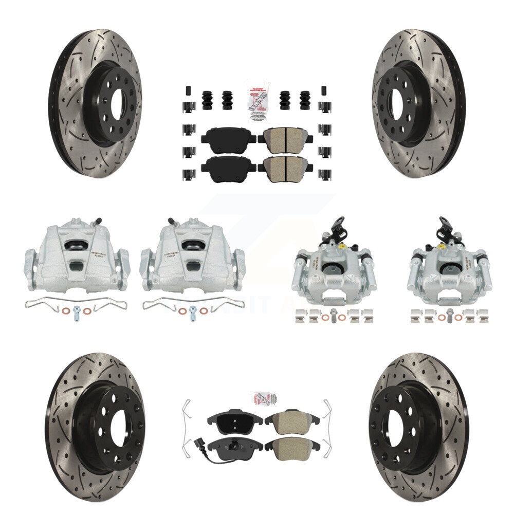 Front Rear Disc Brake Coated Caliper Drilled Slotted Rotors And Semi-Metallic Pads Kit (10Pc) For Volkswagen Passat KCD-101170N