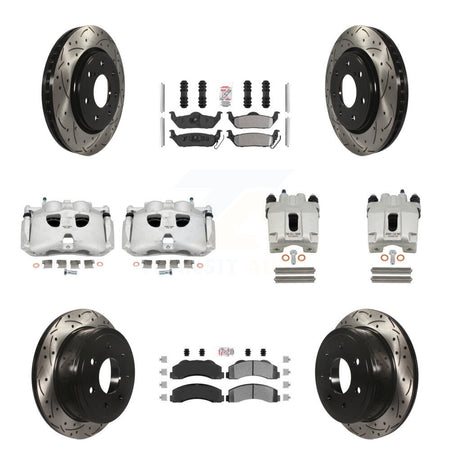 Front Rear Disc Brake Coated Caliper Drilled Slotted Rotors And Semi-Metallic Pads Kit (10Pc) For 2010-2011 Ford F-150 With 7 Lug Wheels KCD-101173N