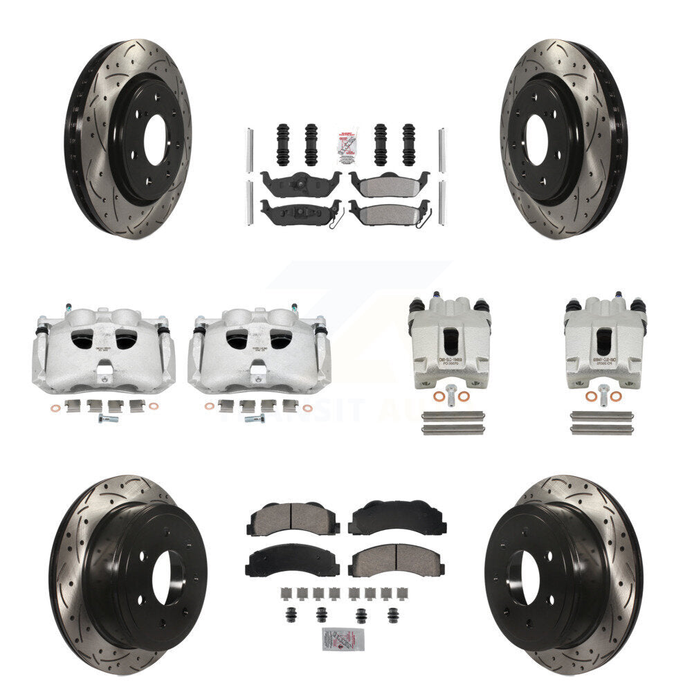 Front Rear Disc Brake Coated Caliper Drilled Slotted Rotors And Semi-Metallic Pads Kit (10Pc) For 2010-2011 Ford F-150 With 7 Lug Wheels KCD-101177N