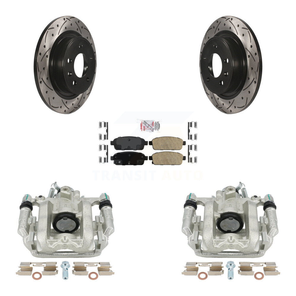 Rear Disc Brake Coated Caliper Drilled Slotted Rotors And Ceramic Pads Kit For 2013 Chevrolet Cruze LT LTZ With 292mm Diameter Rotor KCD-101284N