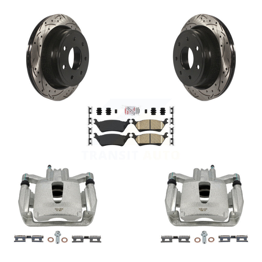 Rear Disc Brake Coated Caliper Drilled Slotted Rotors And Ceramic Pads Kit For 2012-2014 Ford F-150 With 7 Lug Wheels KCD-101292N