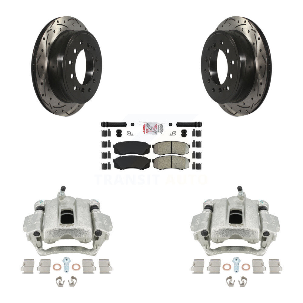 Rear Disc Brake Coated Caliper Drilled Slotted Rotors And Semi-Metallic Pads Kit For Toyota 4Runner Lexus GX460 KCD-101339N