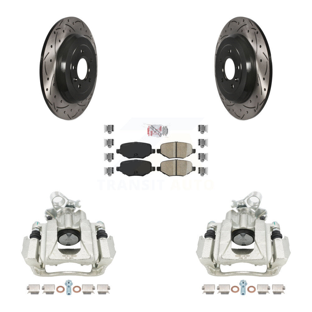 Rear Disc Brake Coated Caliper Drilled Slotted Rotors And Ceramic Pads Kit For Ford Explorer Taurus Flex Lincoln MKT KCD-101381N