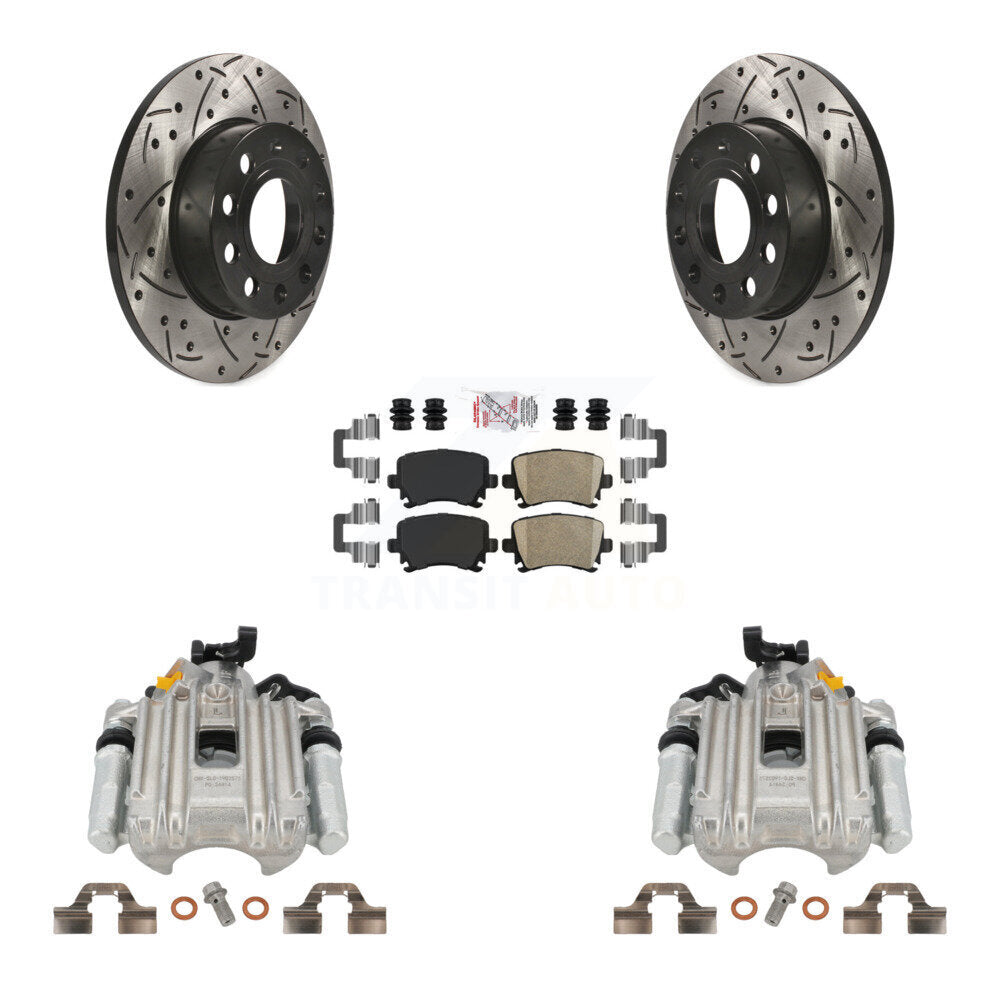 Rear Disc Brake Coated Caliper Drilled Slotted Rotors And Ceramic Pads Kit For Volkswagen Jetta With 260mm Diameter Rotor 7th 8th Digit Of VIN Is "1K" KCD-101398N