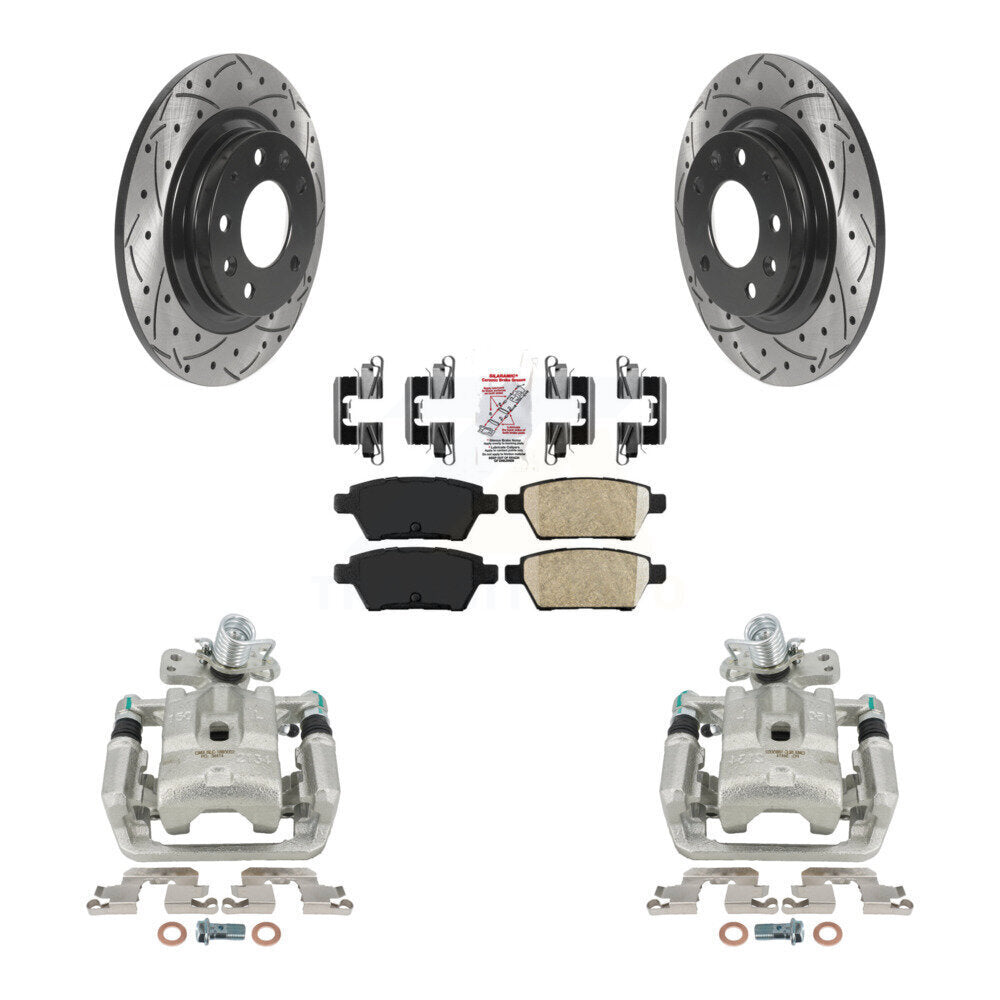Rear Disc Brake Coated Caliper Drilled Slotted Rotors And Ceramic Pads Kit For Ford Fusion Mazda 6 Lincoln MKZ Mercury Milan Zephyr KCD-101405N