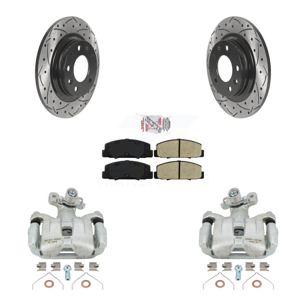 Rear Disc Brake Coated Caliper Drilled Slotted Rotors And Semi-Metallic Pads Kit For 2003-2005 Mazda 6 KCD-101406N
