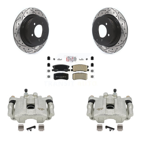 Rear Disc Brake Coated Caliper Drilled Slotted Rotors Ceramic Pad Kit For Jeep Patriot Dodge Compass Avenger Chrysler Sebring Mitsubishi Lancer Caliber 200 Outlander Sport RVR KCD-101439N