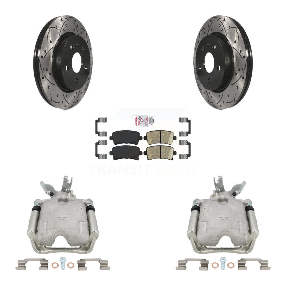 Rear Disc Brake Coated Caliper Drilled Slotted Rotors And Ceramic Pads Kit For 2014-2015 Chevrolet Malibu 2.0L with Turbocharged With 17" Factory Wheels KCD-101456N