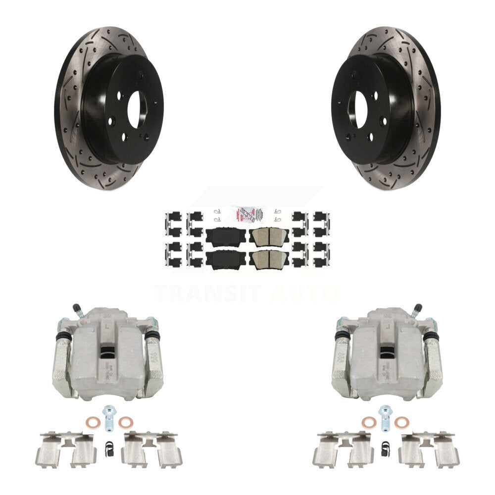 Rear Disc Brake Coated Caliper Drilled Slotted Rotors And Ceramic Pads Kit For Toyota RAV4 KCD-101558N
