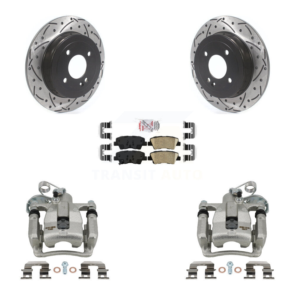Rear Disc Brake Coated Caliper Drilled Slotted Rotors And Ceramic Pads Kit For 2012-2016 Hyundai Accent KCD-101559N