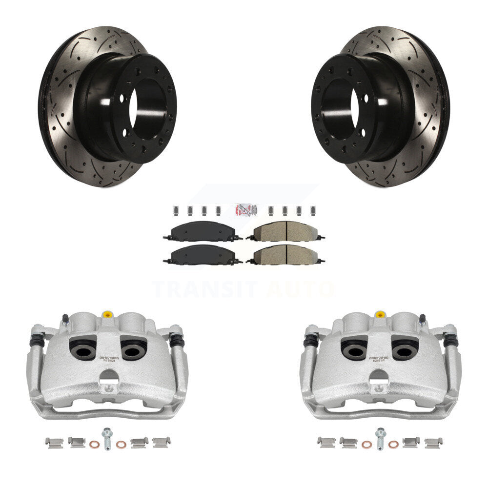 Rear Disc Brake Coated Caliper Drilled Slotted Rotors And Semi-Metallic Pads Kit For Ram 2500 3500 Dodge KCD-101591N