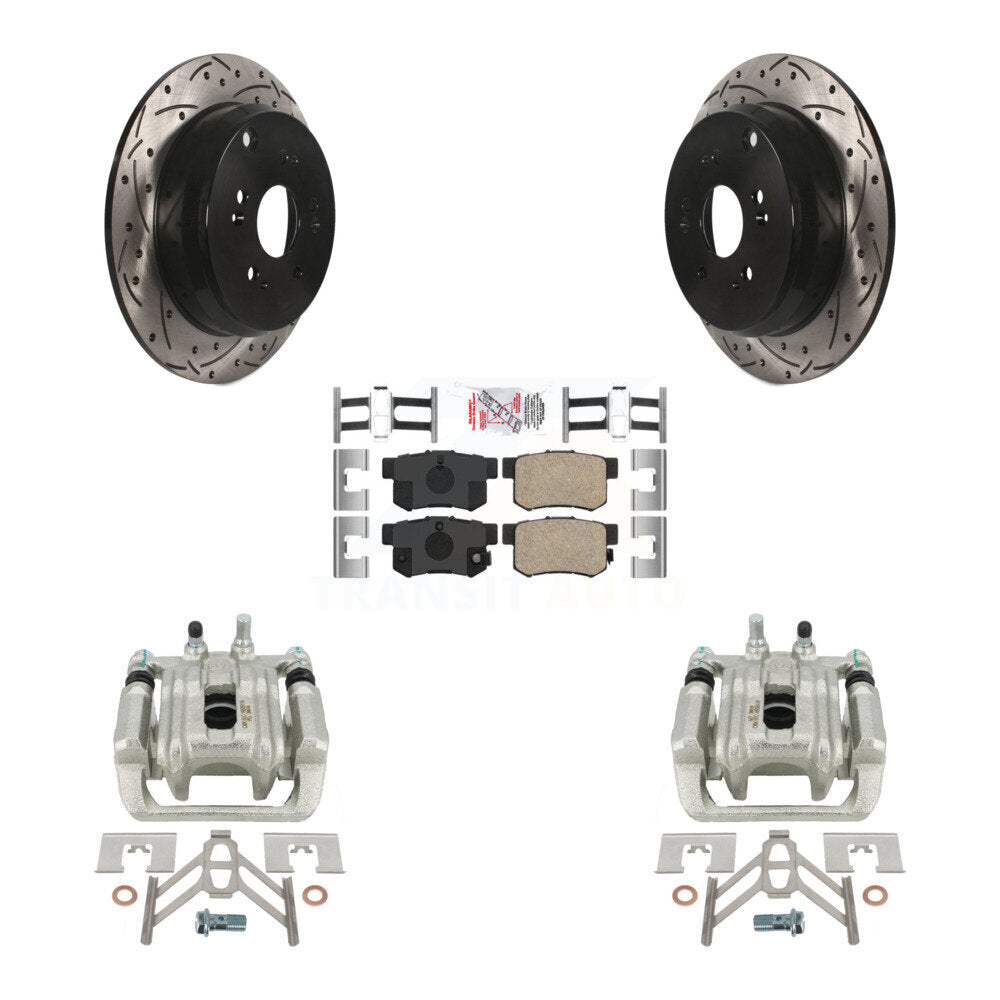 Rear Disc Brake Coated Caliper Drilled Slotted Rotors And Ceramic Pads Kit For Acura RDX KCD-101604N