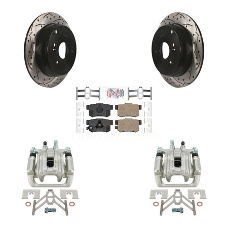 Rear Disc Brake Coated Caliper Drilled Slotted Rotors And Ceramic Pads Kit For 2005-2006 Honda CR-V KCD-101607N