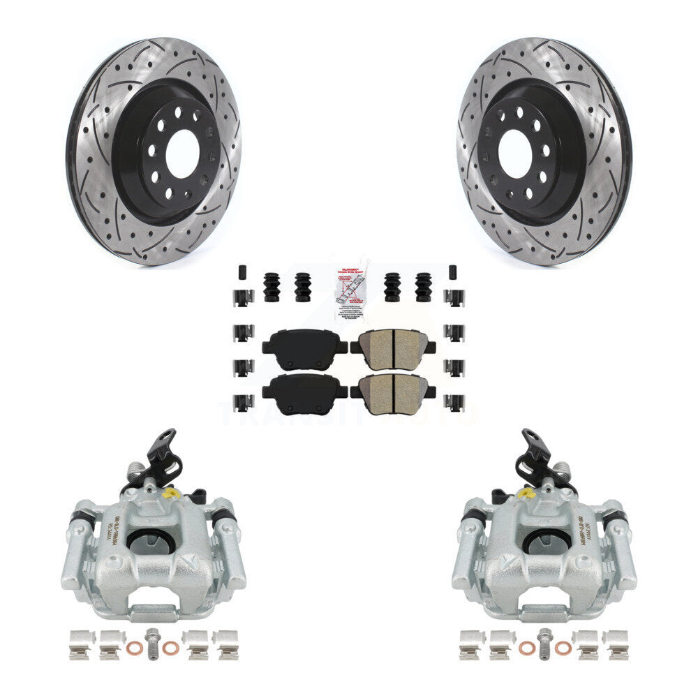 Rear Disc Brake Coated Caliper Drilled Slotted Rotors And Semi-Metallic Pads Kit For 2013 Volkswagen GTI With 310mm Diameter Rotor KCD-101610N
