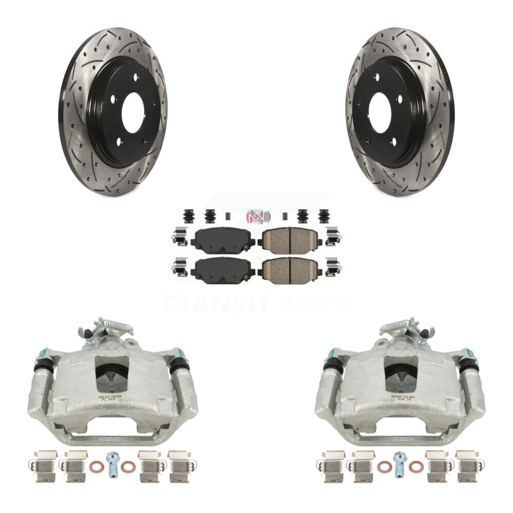 Rear Disc Brake Coated Caliper Drilled Slotted Rotors And Ceramic Pads Kit For 2017-2018 Dodge Grand Caravan With Single Piston Front KCD-101648N
